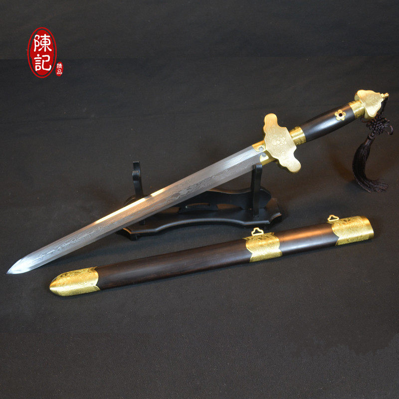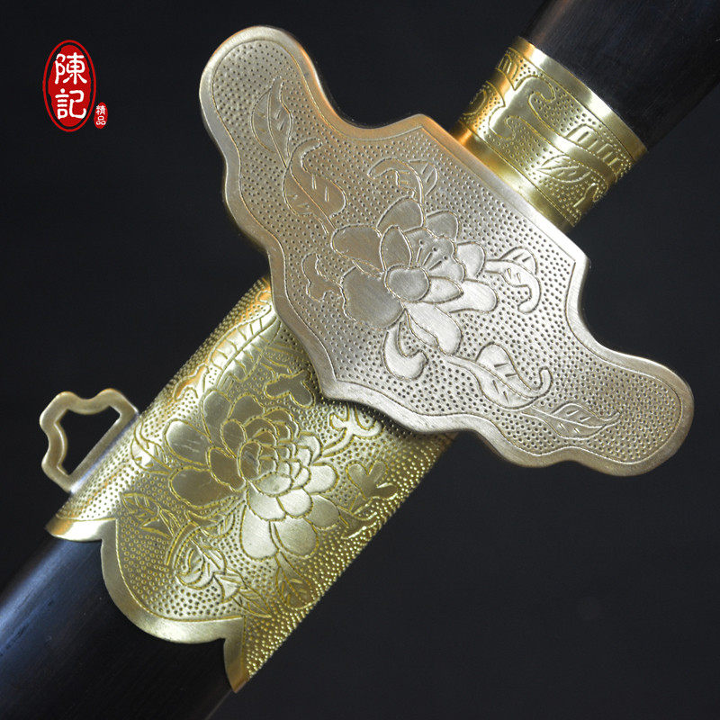 Gentleman Peony Sword Traditional Handmade Sword Dragon Quan Chen Kee Treasure Sword Flower Pattern Steel Octafacial Hard Sword Brass Unopened Blade