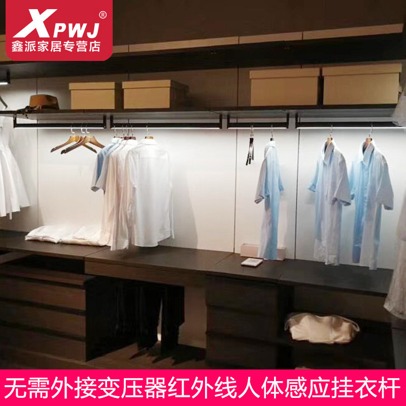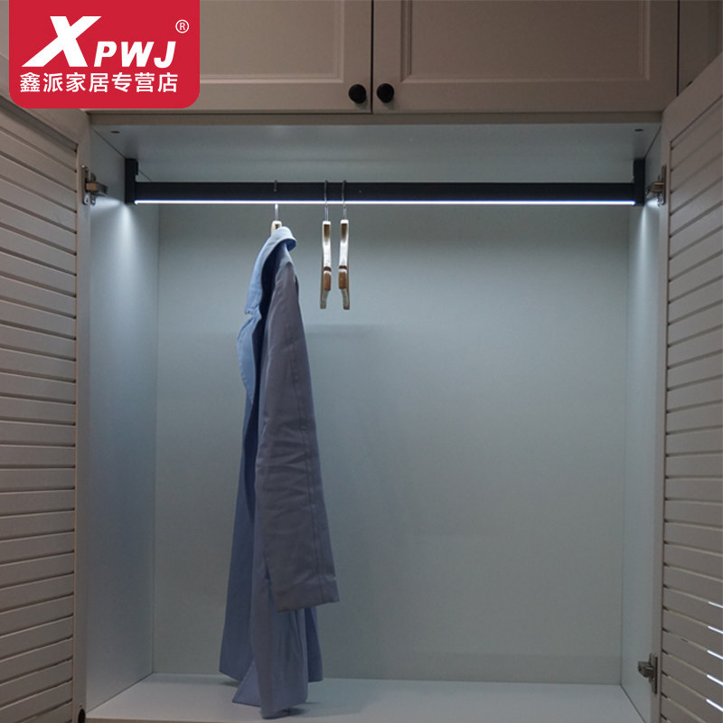 Omo LED induction clothes lever human body induction lamp wardrobe hanging clothing rod with lamp aluminum alloy hoisting clothing rod