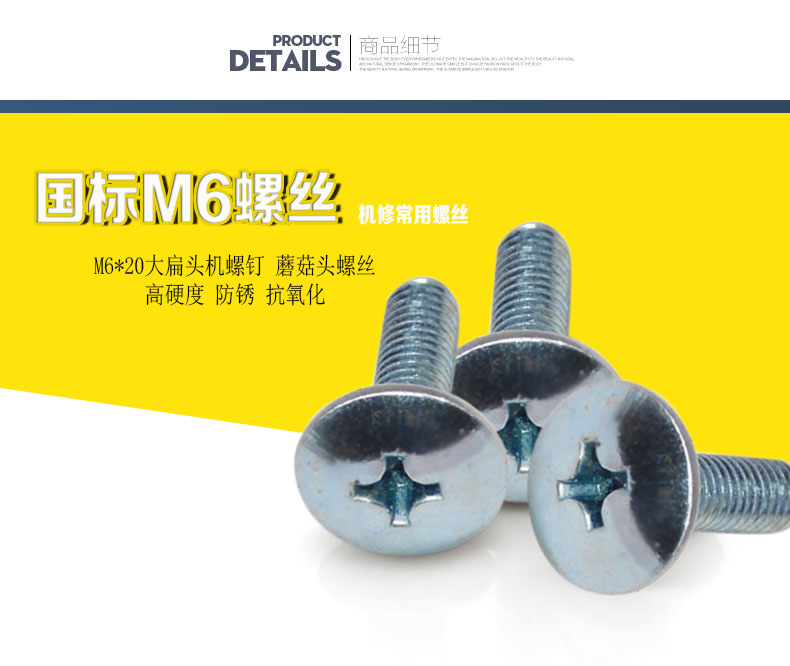 Galvanized cross groove large flat head machine screw M6*20mm flat head umbrella head screw fastening screw accessories