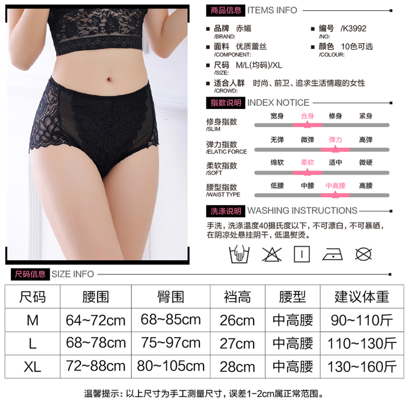 New Large size high waist, hip lift, abdomen sexy, comfortable, seamless, transparent briefs, panties, female lace temptation