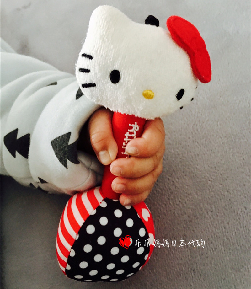 Japan Kombei Kitty Newborn baby grab shake shake rattle black and white red visual plush toy 0 months from now