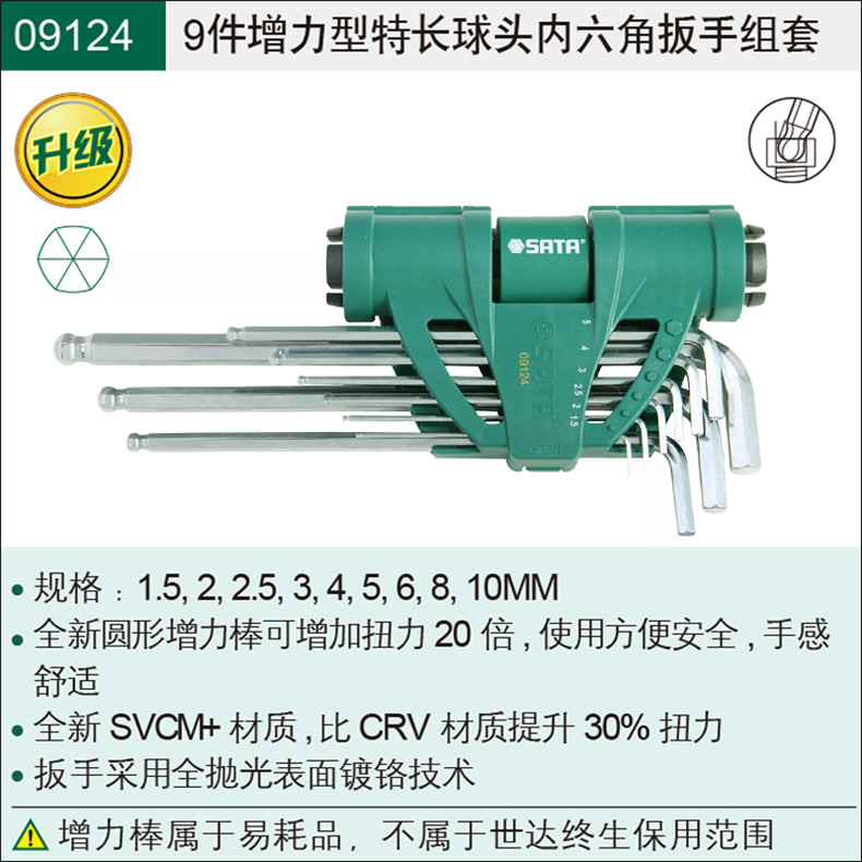 Shida special long ball head hex wrench set metric 9-piece power-enhancing hexagonal L-shaped inner hexagonal key 09124