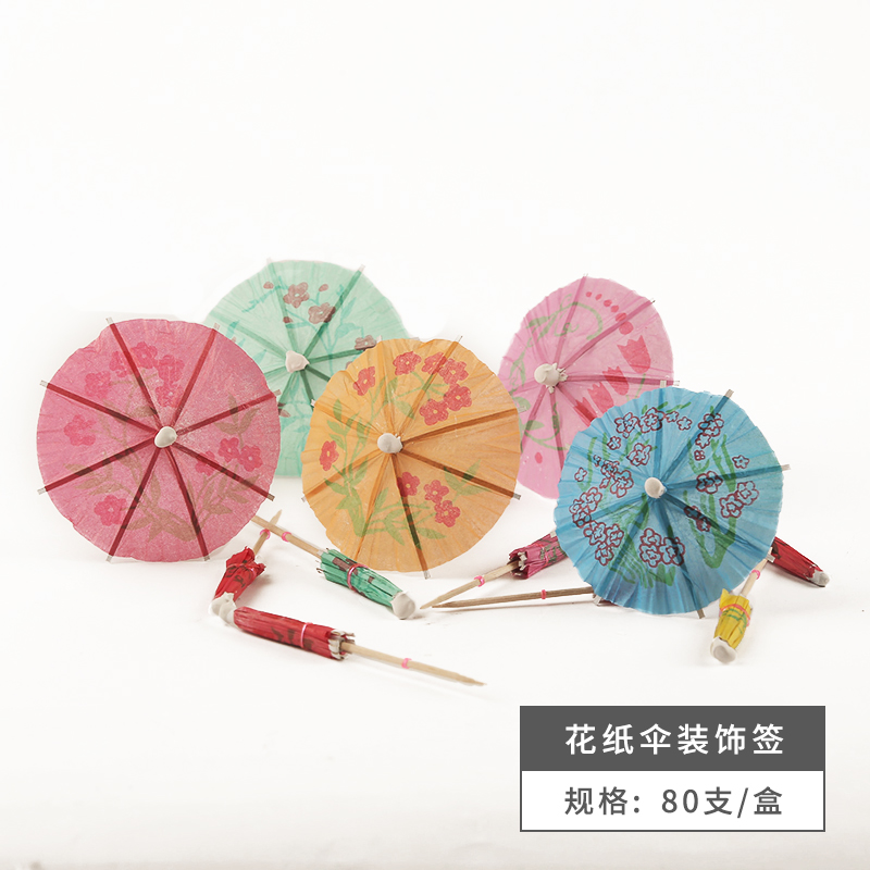 Small Umbrella Sign Flower Paper Umbrella Sign Cocktail Sign Fruit Umbrella Sign Cake Drink Ornament Accessories Creative Decoration Sign