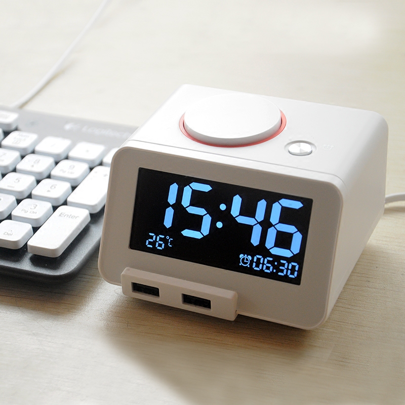 Homtime C1 Electronic Alarm Clock LED silent night light greed sleeping belt thermometer students bedhead super-large bell sound
