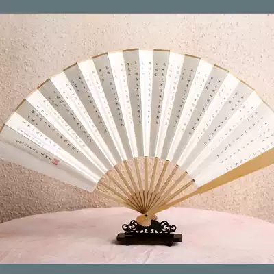 10 inch male fan hand-painted gift rice paper fan wenplay collection folding fan Men's fan small letter calligraphy gift bamboo folding fan