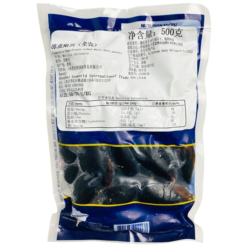 Original imported 500g box full shell Chilean blue mussels mussels sea rainbow shellfish blue mussels green mussels fresh