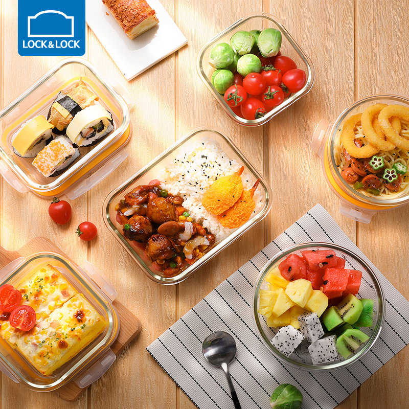 Music button heat-resistant glass storage box microwave oven glass bowl lunch box bento box refrigerator fresh-keeping box