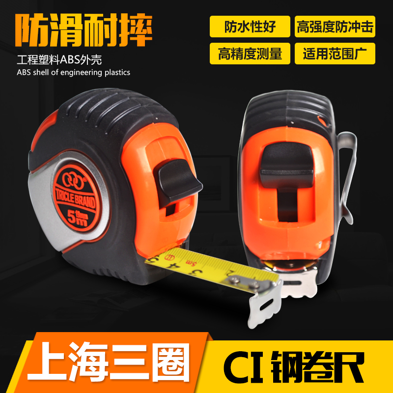 Three - lap steel ruler 5 m high precision measurement belt locking ruler household decoration tool rubber resistant steel ruler
