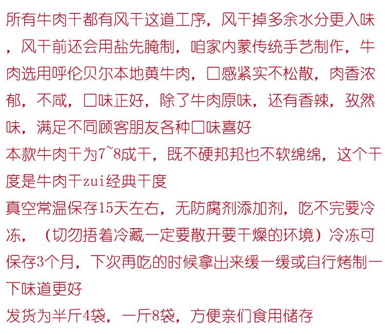 Lunbeier grassland air-dried beef jerky shredded beef jerky herders pure handmade freshly roasted beef jerky 250g
