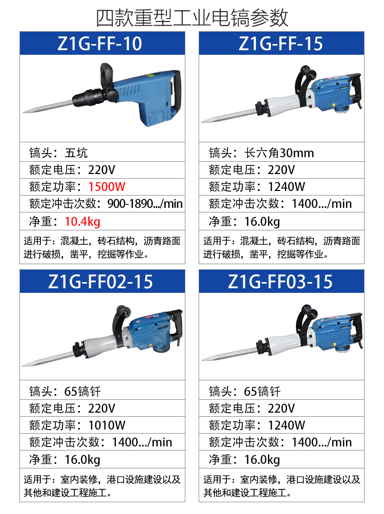 Z1G-FF15 Factory configuration Z1G-FF-15 1 point chisel Z1G-FF-15 1 point chisel 1 flat chisel