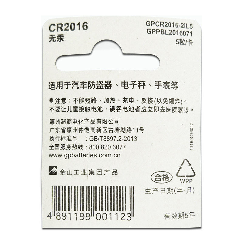 GP Superbulls home-made button Batteries CR2016 3V Iron General Calculator car remote control Small battery 3 grain