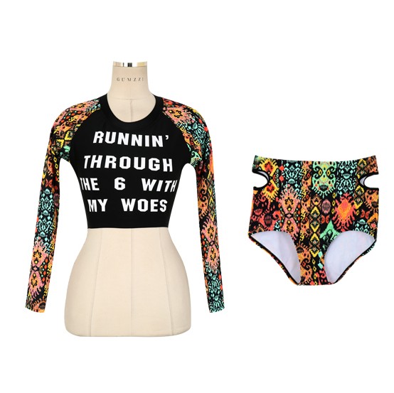 Female swimwear letter Han version Three sets of high waist flat angle long sleeve sunscreen Jellyfish Diving Suit Spa Swimsuit