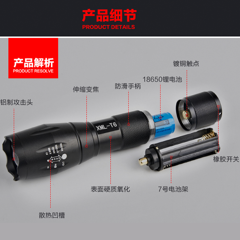Strong light flashlight rechargeable long-range mini home super bright outdoor survival riding can zoom