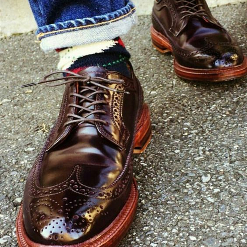 Play the children ahead, Goodyear Brock style Carved Handmade Leather Shoes Business Casual Derby Shoe Men