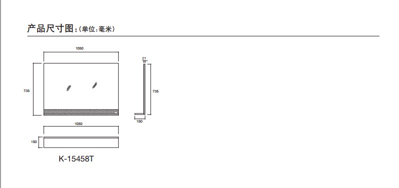 Kohler K-15458T-FH F61 Rasul 1050mm mirror makeup mirror cabinet