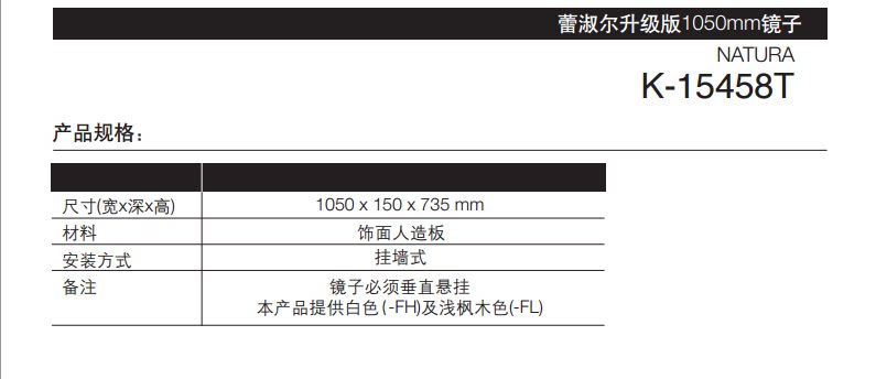 K-15458T-FH White K-15458T-F61 Light oak