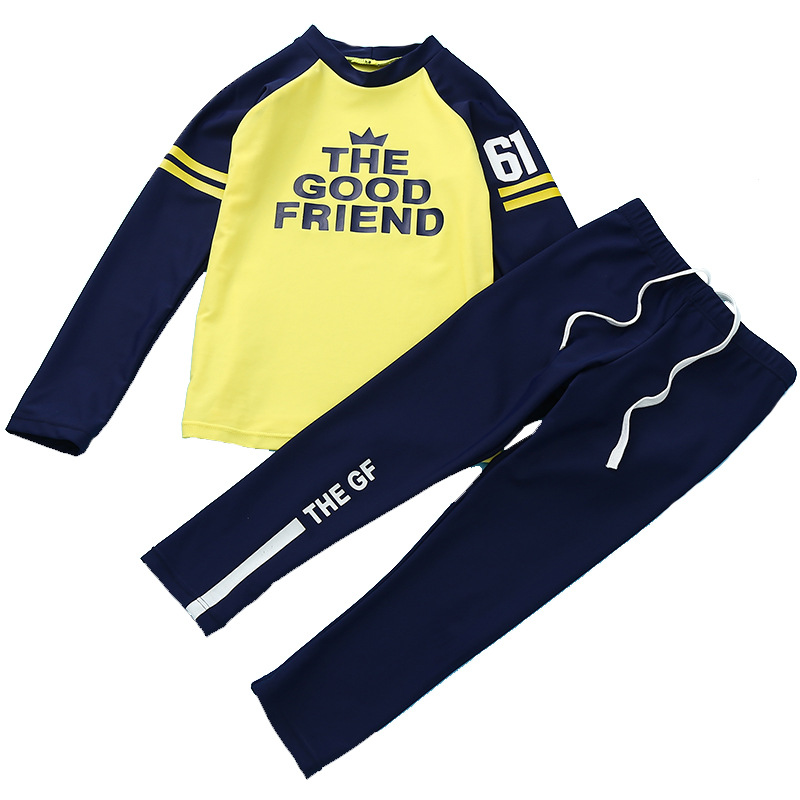 Beach surfing boys and girls children's swimsuit suit long-sleeved sunscreen alphabet print split children's swimsuit