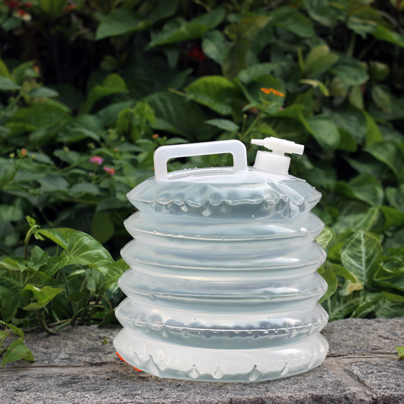 Outdoor PE food grade folding drinking bucket 10L liters portable self-driving camping faucet sealed home water storage tank