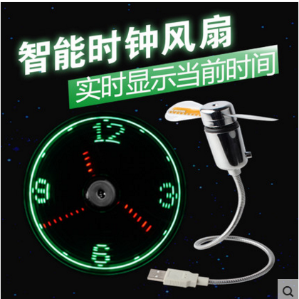 USB clock fan LED luminous mini fan desk charging treasure DIY fan time fan
