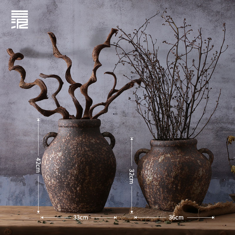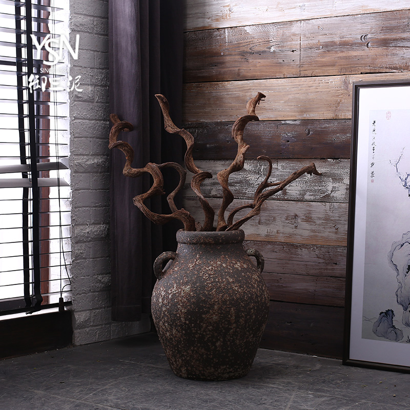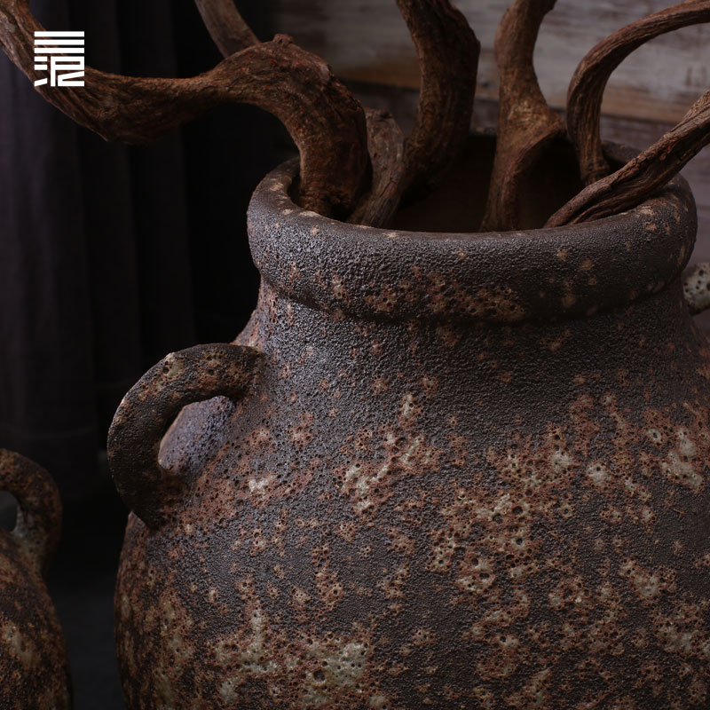 Jingdezhen handmade rough pottery large pottery retro soft decoration black Zen vase Chinese ceramic home decoration