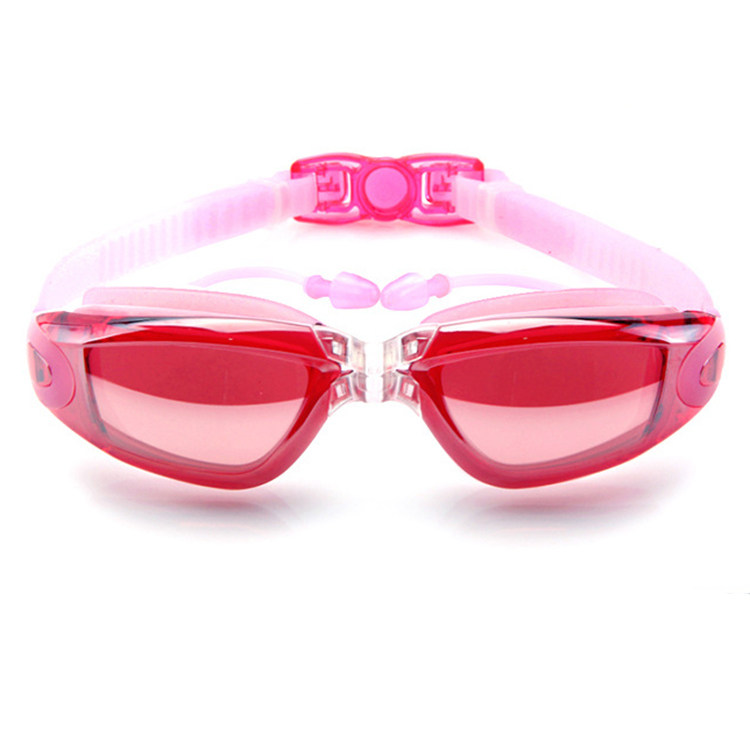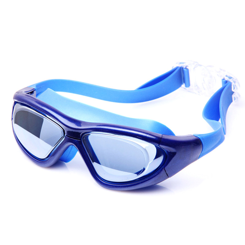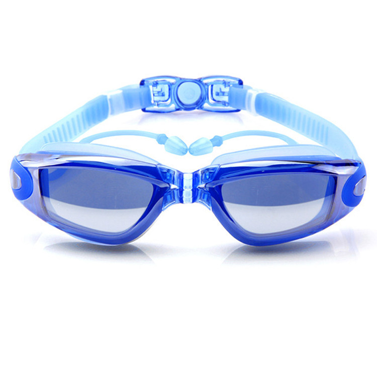Swimming glasses HD anti-fog waterproof ladies man with earplugs integrated electroplating flat light swimming glasses big frame diving mirror