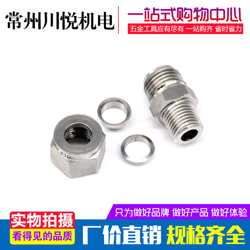 (Authentic 304) stainless steel ferrule joint straight-through terminal single and double ferrule joint ferrule-type pipe joint