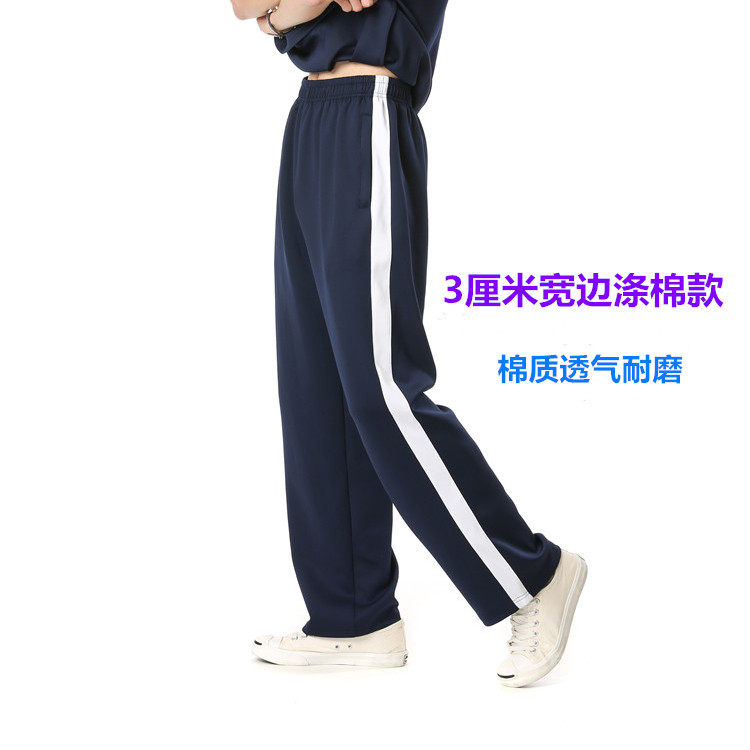 Autumn and winter dark blue double thin edge school uniform pants student sports pants men's and women's junior high school wide white edge quick-drying thick school uniform pants