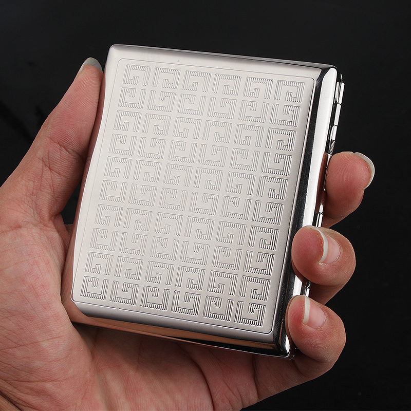 High-end Hong Kong brand smoking set 20 stainless steel cigarette case cigarette case carry-on ultra-thin flip personality cigarette case