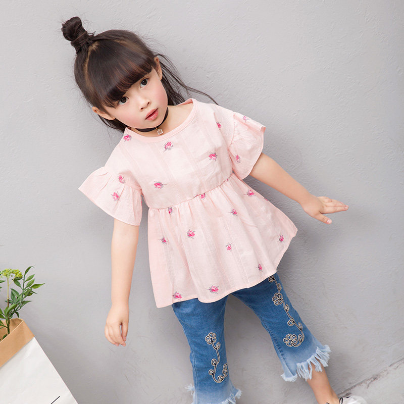 Summer new girl blouses female baby short sleeves Korean version dress new children foreign dress children's summer dresses