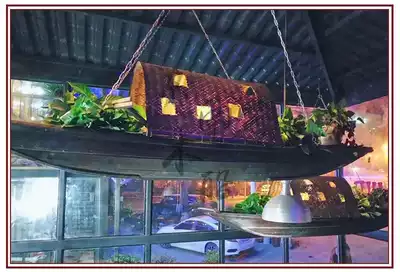 Customized hand rowing wooden boat hotel decoration boat awry boat landscape hand rowing video props boat hanging ceiling boat