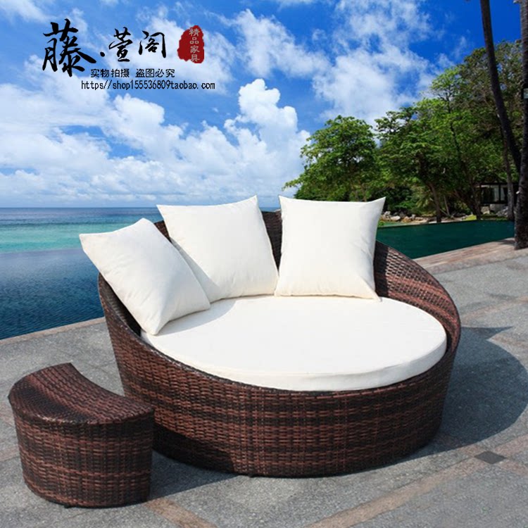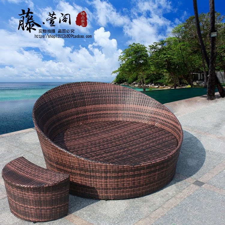 Rattan round bed Villa courtyard beach pool garden balcony lunch break imitation vine sun reclining bed Outdoor rattan reclining bed