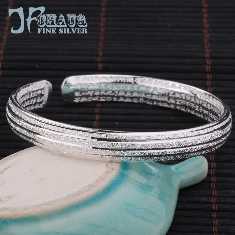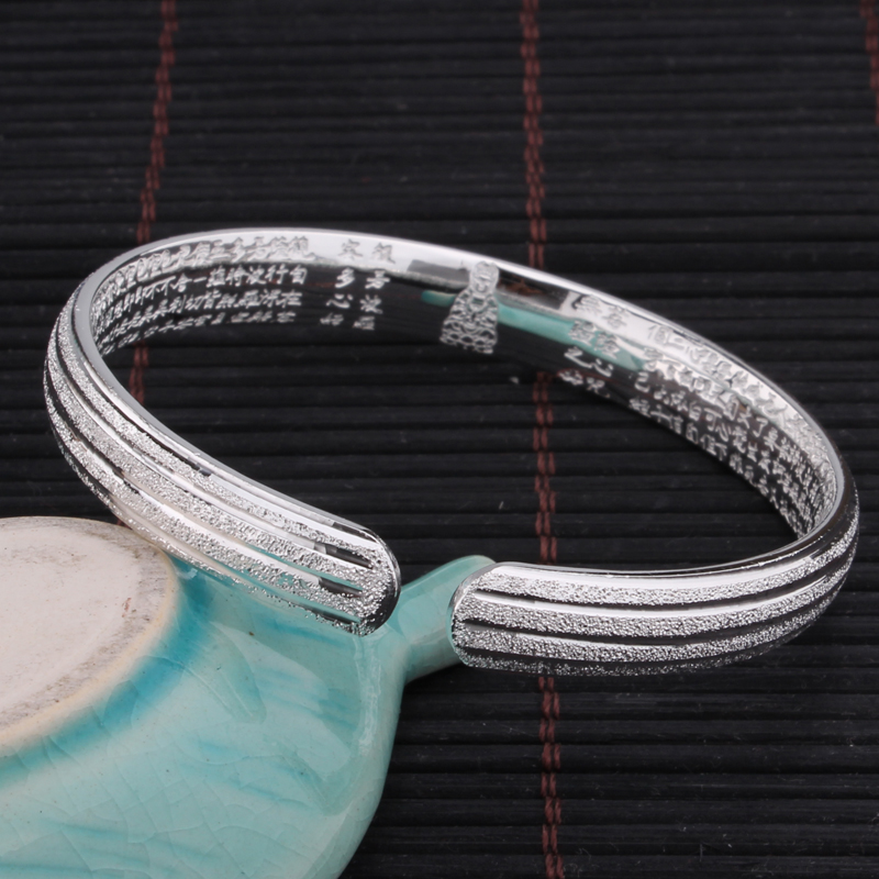 9999 foot silver Prajna heart Sutra silver bracelet Female couple open scripture Sterling silver bracelet Fashion matte silver bracelet