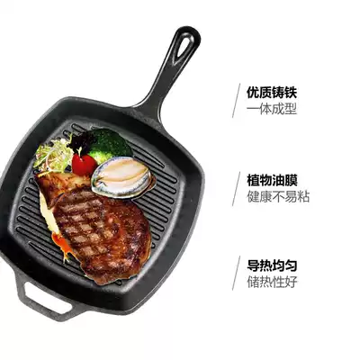 Lodge American uncoated cast iron pan steak square frying pan stripe not easy to stick pot 26cm L8SGP3