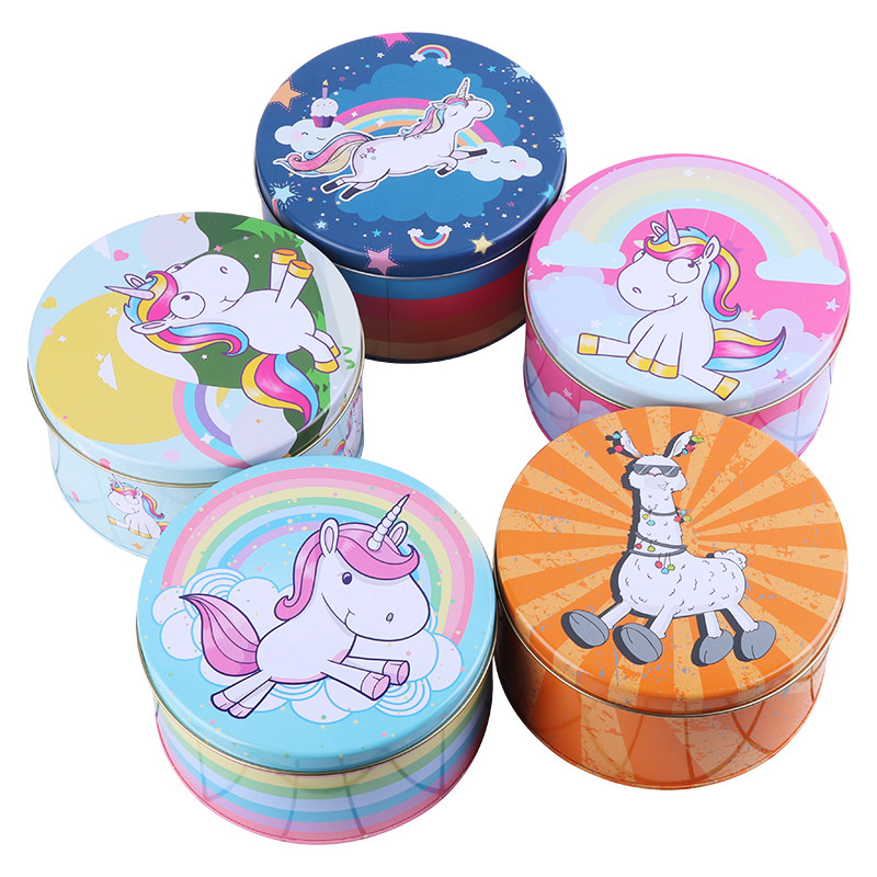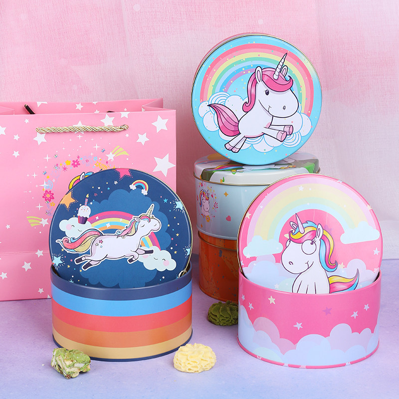 Unicorn cookie box Round iron box Cake candy box Baking packaging box Cookie creative tinplate box