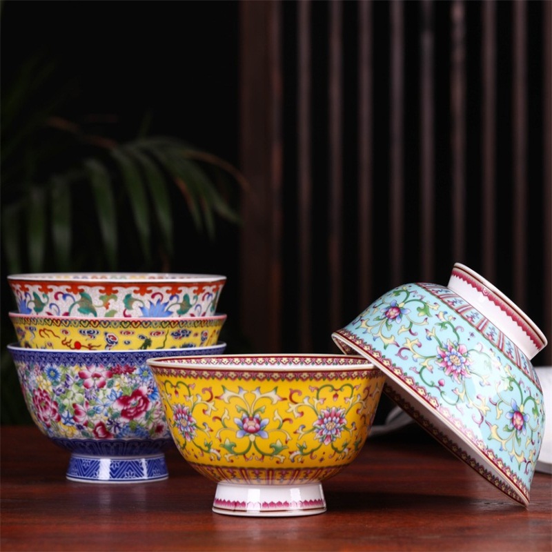 Jingdezhen Ceramic 6-inch Bowl Single High Foot Anti-Burn flour bowl Eat Rice Bowls Dish Home Imitation Ancient Suo Bowl