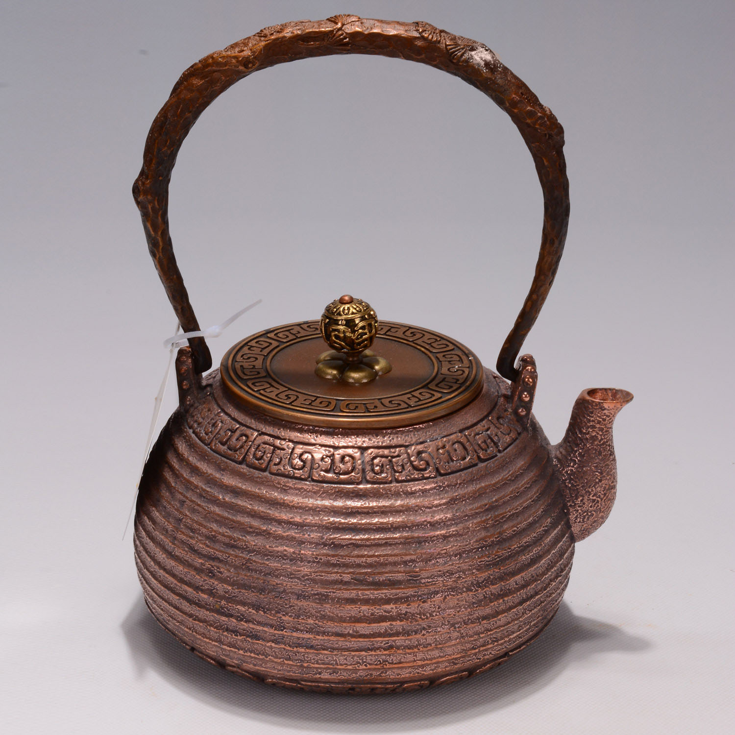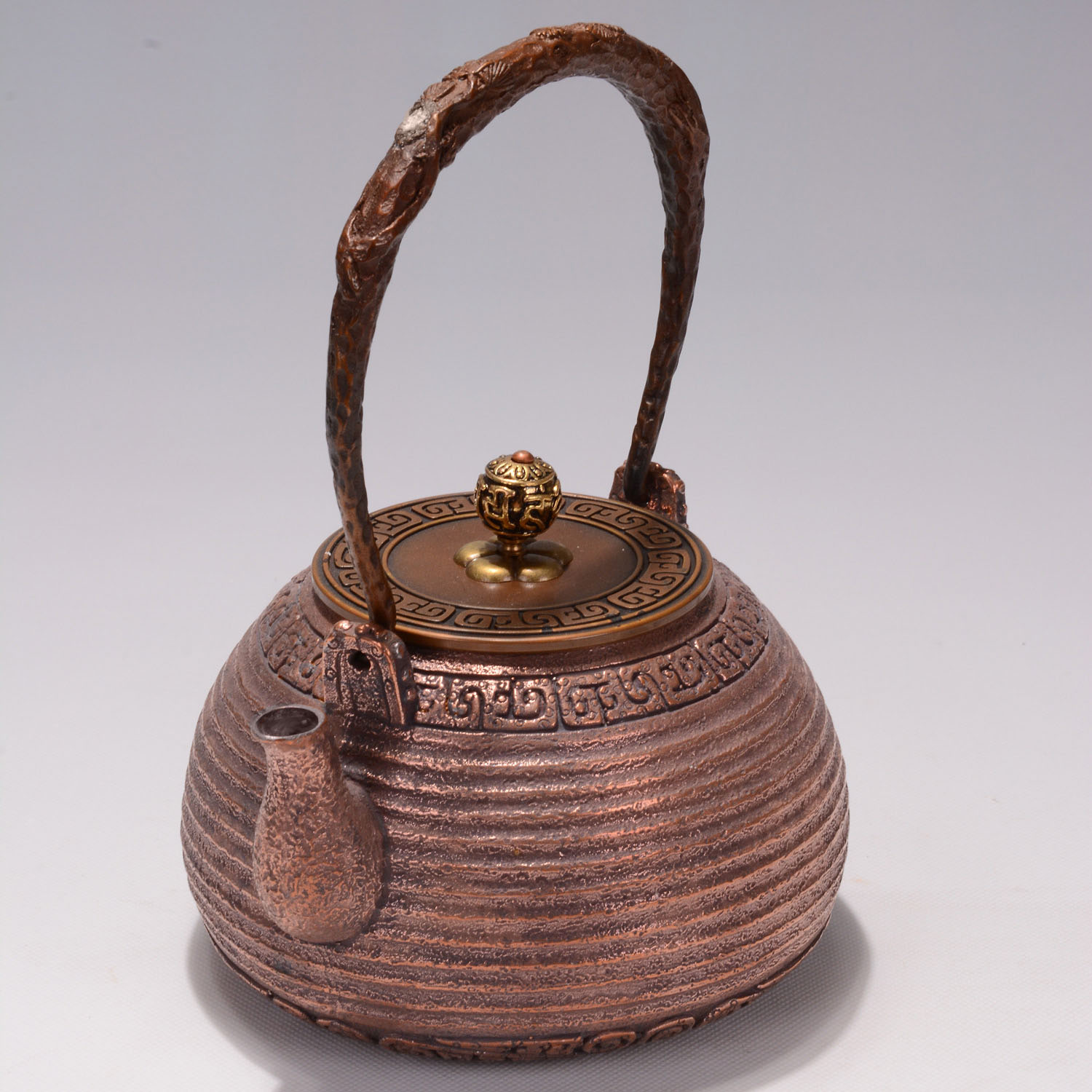 Water polo veins red copper pot pure copper burning water pot pure hand imitation ancient tea set thickened cast copper pot without coating copper teapot