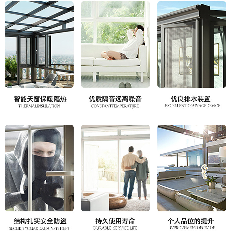 Chengdu custom system greenhouse Aluminum alloy greenhouse Villa garden Silent glass Broken bridge screen curtain
