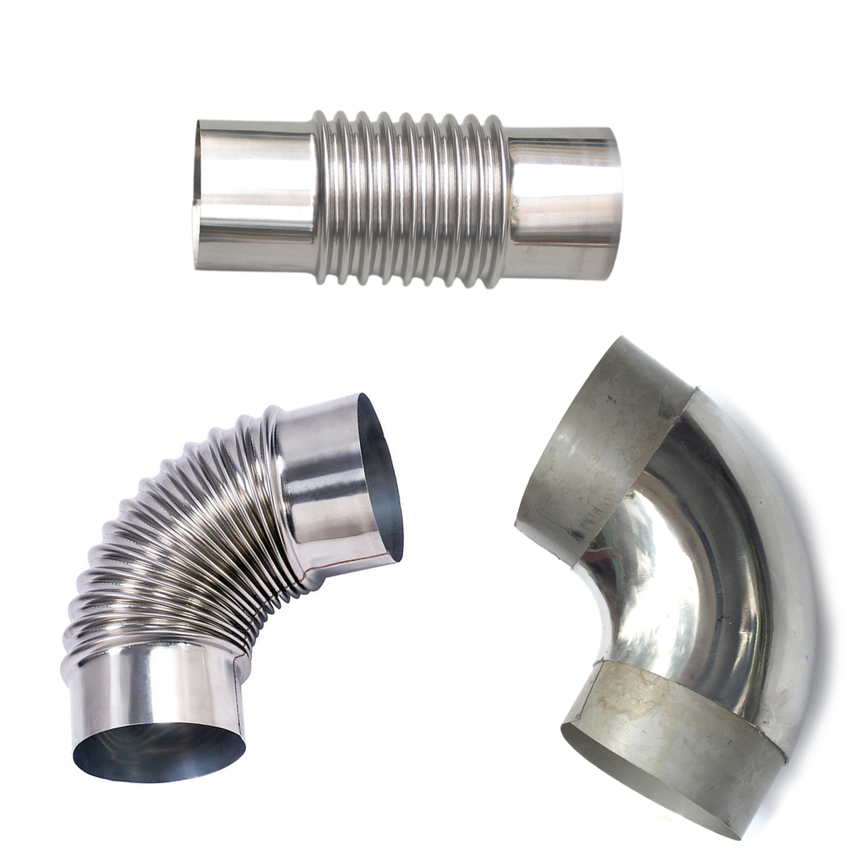 Diameter 9 cm Stainless steel corrugated elbow Diameter 9 cm Stainless steel corrugated direct head diameter 10 cm Stainless steel corrugated elbow Diameter 10 cm Stainless steel corrugated direct head Diameter 10 cm