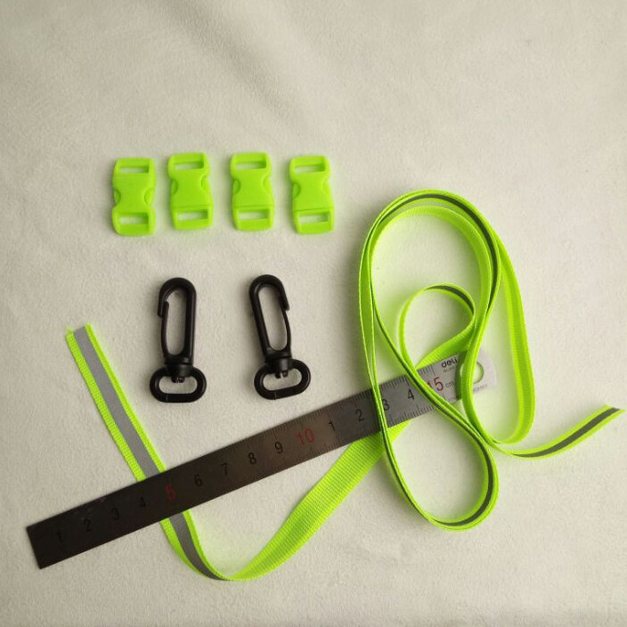 Green buckle 5 hooks for 2 buckles 4 hooks 2 green reflective strips 1 m