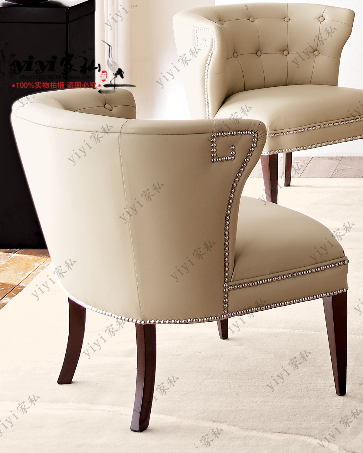 Spot model room neo-classical retro dining chair solid wood dining chair American country pull buckle leather art fabric soft bag dining chair