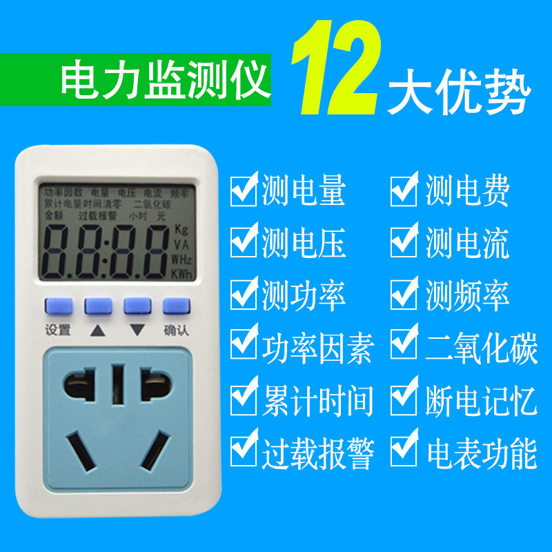 Power monitor AC number of digital display electric meter power metering socket power meter voltage power tester