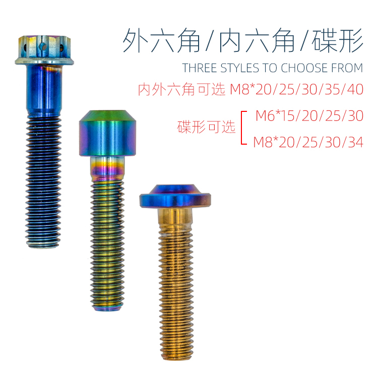 Titanium alloy screw Outer hexagonal M8X25 plated colour titanium alloy screw Outer hexagonal M8X35 plated colour titanium alloy screw Outer hexagonal M8X40 plated colour titanium alloy screw Outer hexagonal M8X30 plated colour