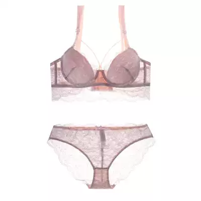 European and American bra lace embroidery thin section gathered sexy wide flank closed pair of breasts underwear set deep V small chest spring and summer