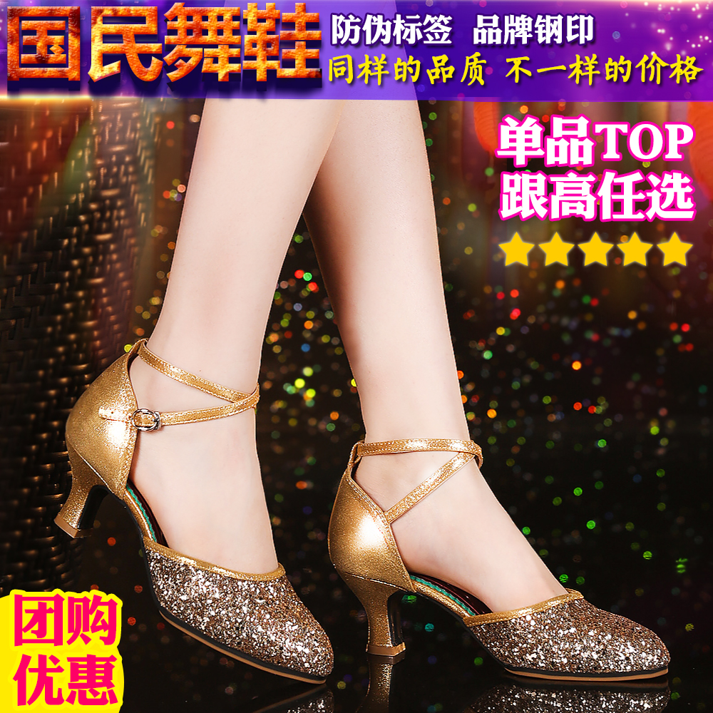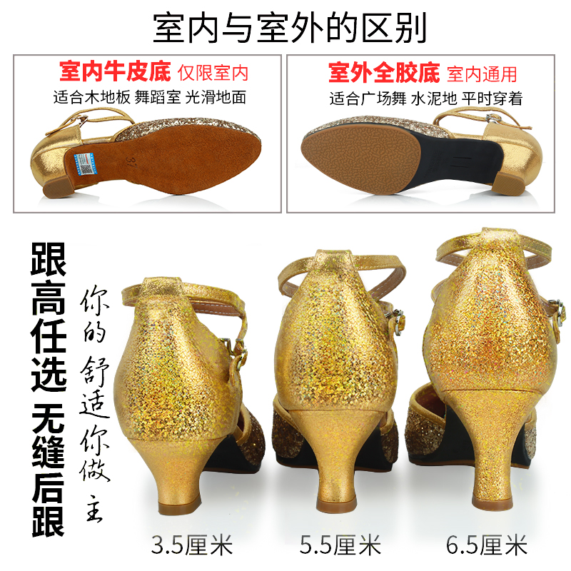 Latin Dance Shoes Women Soft-bottom Gold Heel Dancing with High heel Silver and Xinjiang Uygur Golden New Dance Shoes