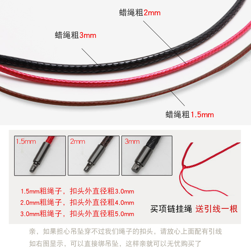 Black button leather cord neckrope black rope man female ring jade pendant rope hanging rope fashion wax rope