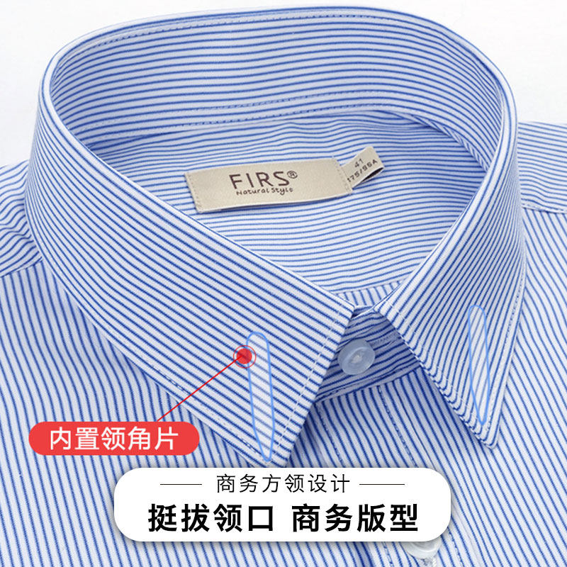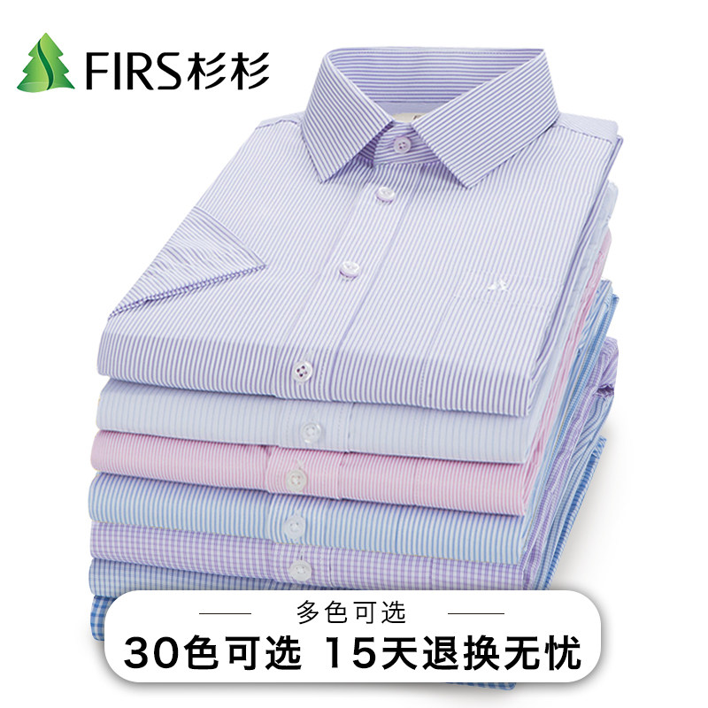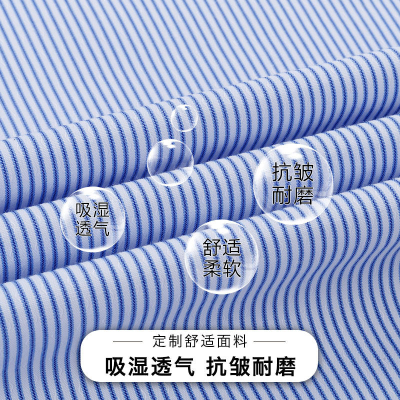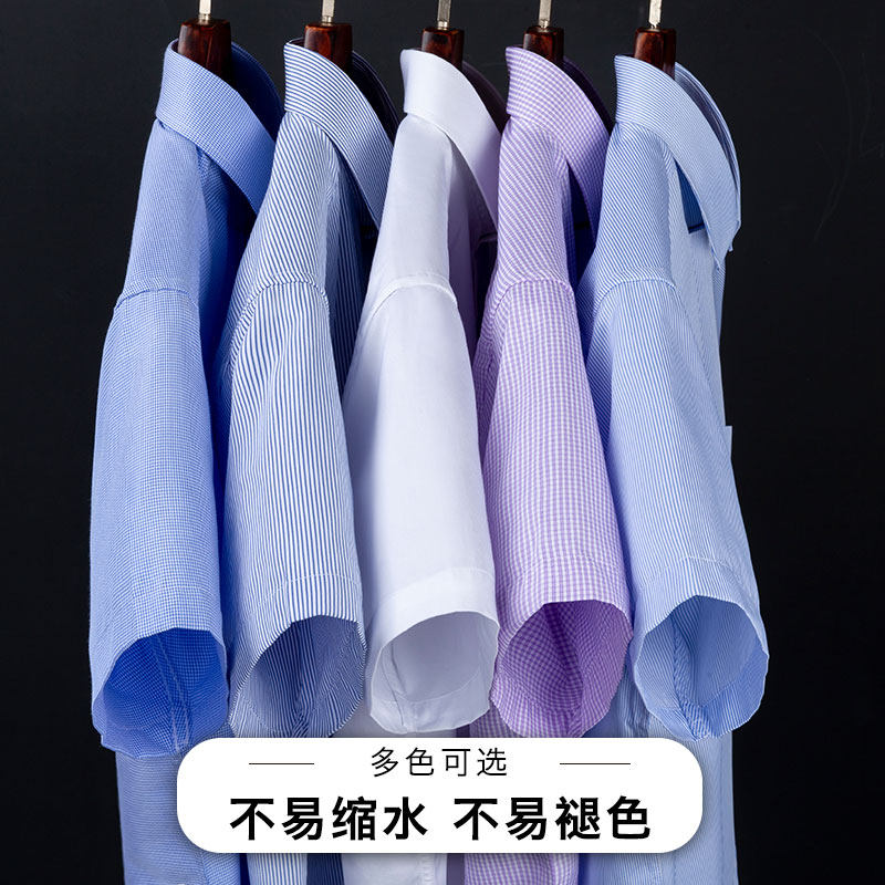 Cedar Summer Men Short Sleeves Free Ironing Business Casual Shirts Blue Striped Middle-aged Half Sleeves Men Dress White Shirt