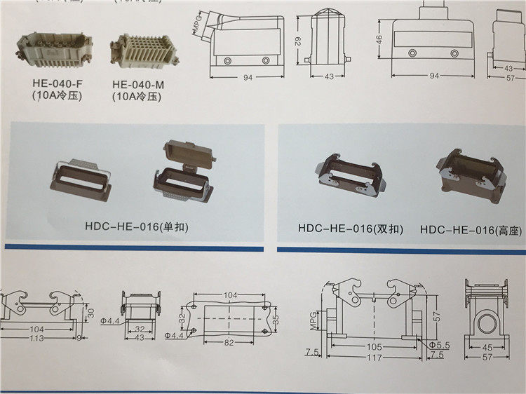 Rongxin HE-016-M F heavy-duty connector plug 16 core 16A male and female core rectangular connector hot runner side