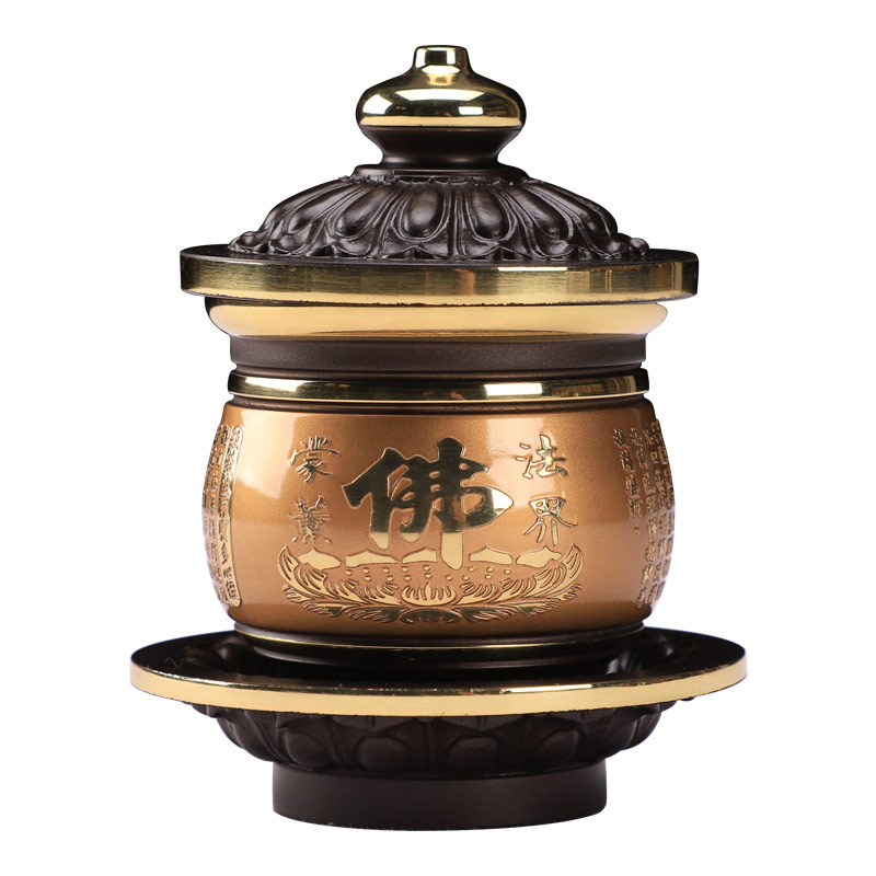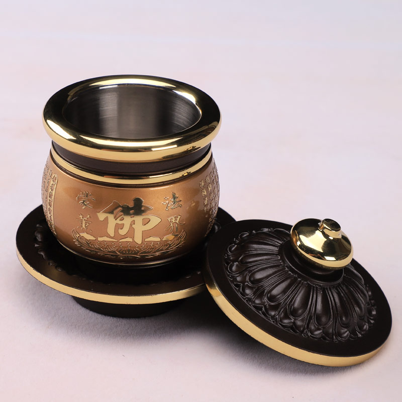 Taiwan BW pure copper bicolor Buddha Words with water supply Cup for the Buddha's Cup Foal to worship Guanyin Water purifying Cup Holy Water Cup