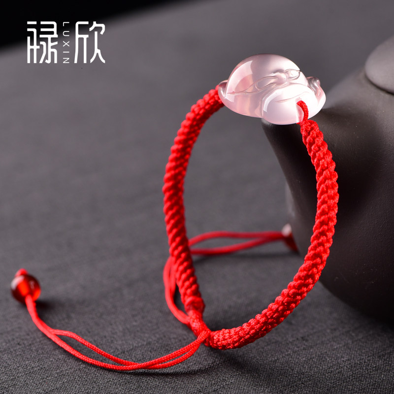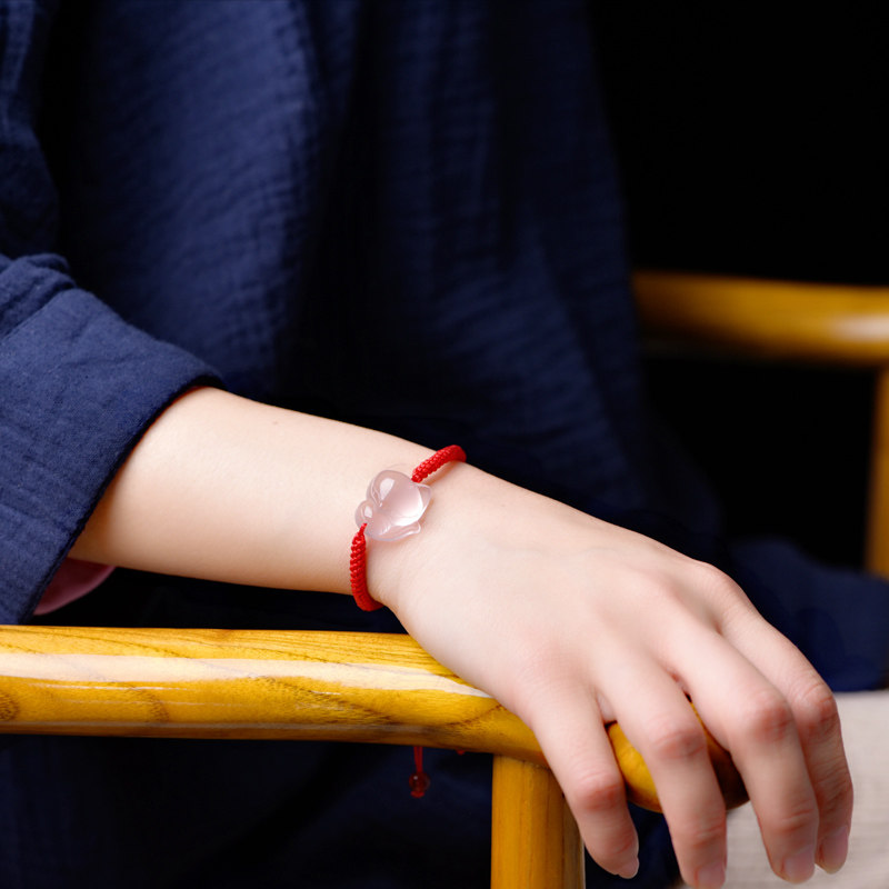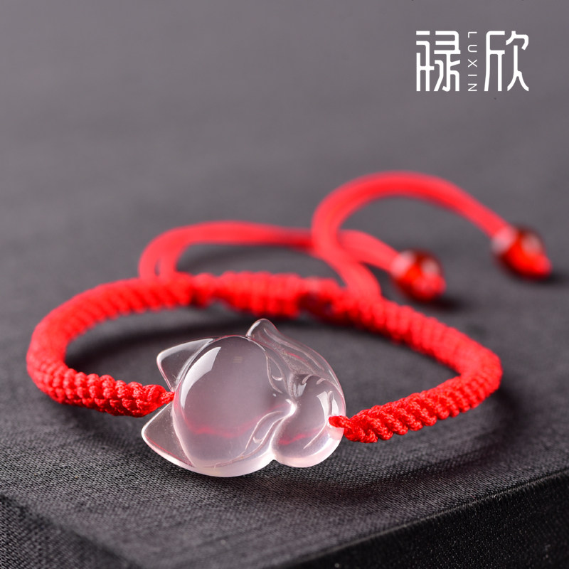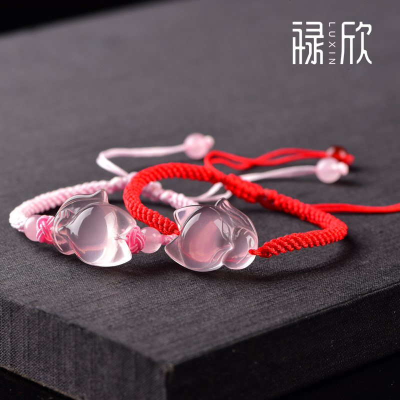 Natural powder crystal fox hand-woven red rope fox hibiscus stone powder crystal string pink jewelry