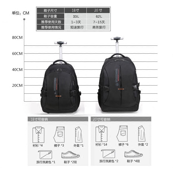 Stretch rod shoulder bag male 20 inch pull rod backpack shoulder travel bag female dual - use ultra - light pull rod shoulder bag female